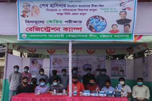 এমদাদ, বিশেষ প্রতিনিধিঃ বাংলাদেশ আওয়ামী স্বেচ্ছাসেবক লীগ, চট্টগ্রাম মহানগর শাখার উদ্যোগে অদ্য ০৮/০৭/২০২১ ইং রোজ বৃহস্পতিবার মাননীয় প্রধানমন্ত্রী, জননেত্রী শেখ হাসিনা ঘোষিত একমাস বিনামূল্যের “গরিবের কোভিড পরীক্ষা জুলাই-২১” কর্মসূচির অংশ হিসেবে “রেজিস্ট্রেশন ক্যাম্প” উদ্বোধন ও বিনামূল্যে মাস্ক ও সচেতনতা মূলক লিফলেট বিতরণ কর্মসূচি পালন করা হয়।সকাল ১১.০০ টায় “রেজিস্ট্রেশন ক্যাম্প” ও শ্রমজীবী মানুষের মাঝে মাক্স বিতরণ কর্মসূচির উদ্বোধন করেন বাংলাদেশ আওয়ামী লীগের স্বাস্থ্য ও জনসংখ্যা বিষয়ক উপ-কমিটির সদস্য, চট্টগ্রাম ফিল্ড হাসপাতালের উদ্যোক্তা ও প্রধান নির্বাহী, সম্মুখসারীর করোনা যোদ্ধা জনস্বাস্থ্য বিশেষজ্ঞ ডা: বিদ্যুৎ বড়ুয়া। মাসব্যাপী এই কর্মসূচীর সমন্বয়ক হিসেবে দায়িত্বপালন করছেন মহানগর স্বেচ্ছাসেবক লীগের সংগঠক ও