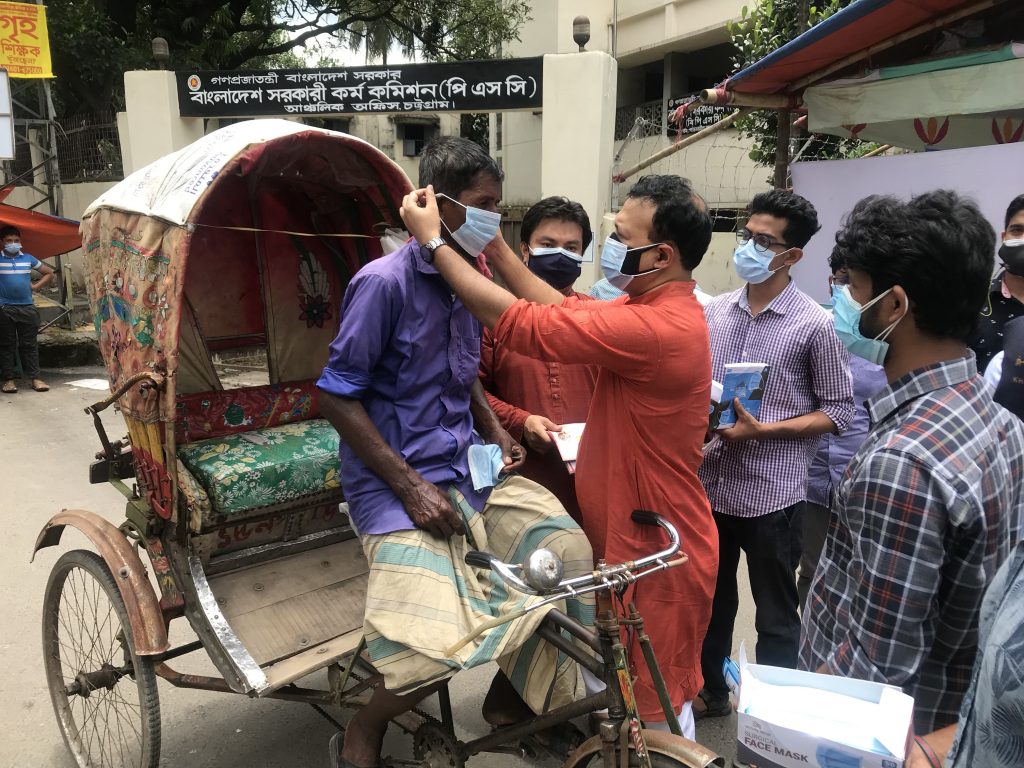 সকাল ১১.০০ টায় “রেজিস্ট্রেশন ক্যাম্প” ও শ্রমজীবী মানুষের মাঝে মাক্স বিতরণ কর্মসূচির উদ্বোধন করেন বাংলাদেশ আওয়ামী লীগের স্বাস্থ্য ও জনসংখ্যা বিষয়ক উপ-কমিটির সদস্য, চট্টগ্রাম ফিল্ড হাসপাতালের উদ্যোক্তা ও প্রধান নির্বাহী, সম্মুখসারীর করোনা যোদ্ধা জনস্বাস্থ্য বিশেষজ্ঞ ডা: বিদ্যুৎ বড়ুয়া।